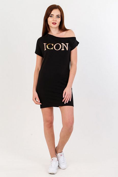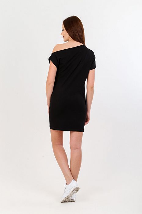Туника полуприлегающего силуэта длиной выше колена. Вырез горловины на одно плечо. Рукав спущенный, короткий.