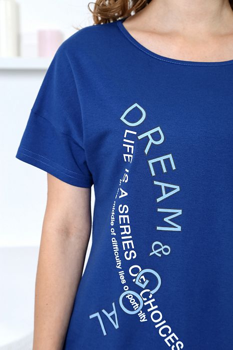 Футболочка с короткими рукавами с горловиной овальной формы и модным принтом в центре подчеркнёт вашу индивидуальность.