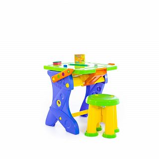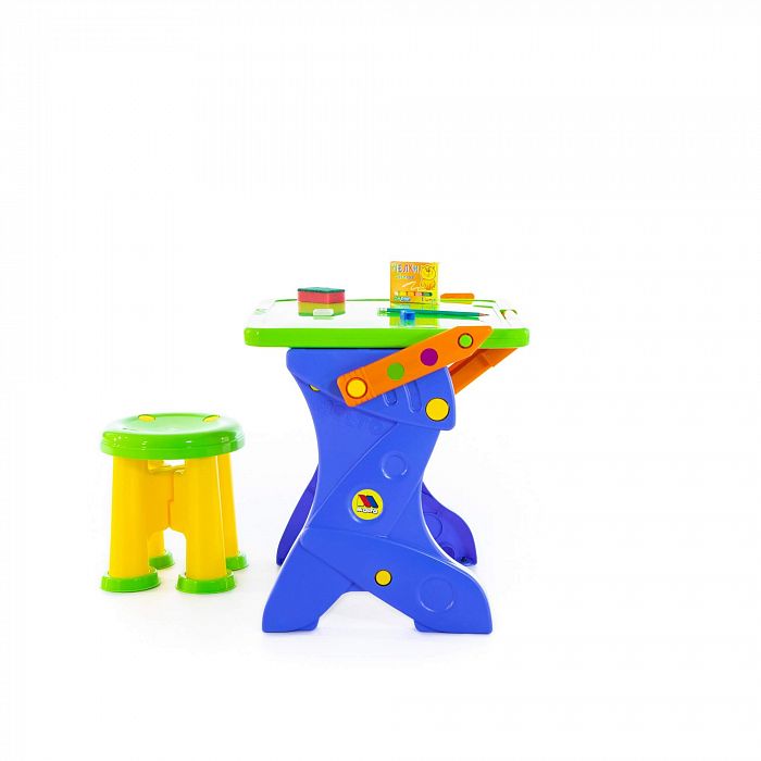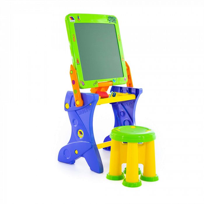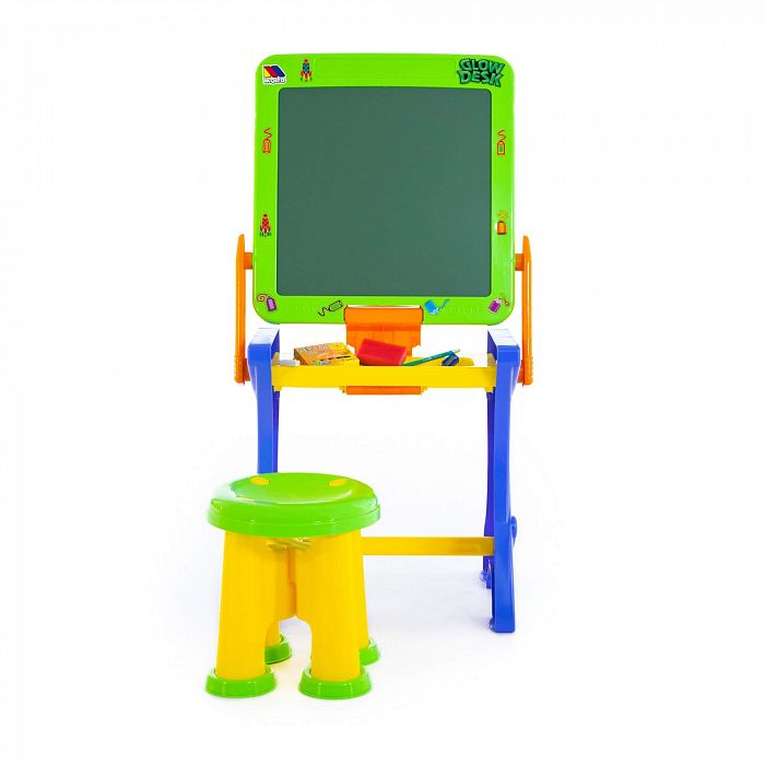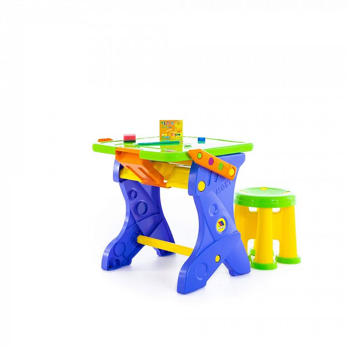 Столик принимает 2 положения: парта и мольберт для рисования мелками. В комплект входят: мелки, губка, карандаш, точилка, стёрка. У столика имеется полочка для канцелярских принадлежностей. Размер в упаковке: 49х45х48 см. Цвета предметов в наборе могут быть иными, чем на фото. Но все столь же яркие и жизнерадостные