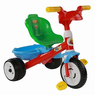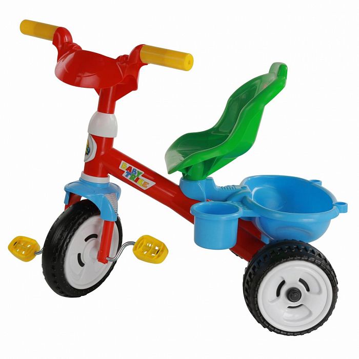 Эта наиболее простой вариант из серии ярких трёхколёсных велосипедов «Беби Трайк» от фабрики «Полесье» За сиденьем предусмотрена ниша, в которой малыш сможет перевозить мелкие предметы или любимые игрушки, а также имеются специальные отверстия для фиксации элементов летних наборов и ниша для бутылочки с водой. Колёса велосипеда пластмассовые, конструкция надёжная. Размер в упаковке: 63х50х54 см. Вес 2,65 кг