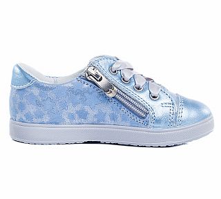 Комфортные легкие полуботинки на кедовой подошве выполнены полностью из натуральной кожи. Кожаная подкладка абсорбирует образующуюся внутри обуви влагу и гарантирует полный комфорт. Мягкий манжет создает комфорт при ходьбе и предотвращает натирание ножки ребенка. Удобная застежка-молния позволяет легко обувать и снимать кеды, а функциональная шнуровка обеспечит идеальную фиксацию обуви на стопе. Литьевой метод крепления подошвы обеспечивает ей максимальную прочность, необходимую гибкость и минимальный вес. Подошва имеет анатомическую форму следа и в точности повторяет изгибы свода стопы, что позволяет ноге чувствовать себя комфортно весь день. Металлизированная голубая расцветка будет отлично комбинировать практически с любым нарядом Вашего малыша!