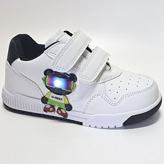 Кроссовки детские для девочек и мальчиков. Кроссовки изготовлены из современного материала - высококачественной экокожи - экологически чистый гипоаллергентнный и воздухопроницаемый материал. Подклад текстильный, благодаря ему внутри обуви создается оптимальный микроклимат для детских ног. Стелька из натуральной кожи анатомической формы поддерживает свод стопы в правильном положении. Подошва из материала ТЭП хорошо гнется, отличается прочностью и позволяет без усталости преодолевать большие расстояния. Полуботинки детские крепятся на ноге с помощью двух ремней. Отличительной особенностью модели является оригинальный мишка на боковой поверхности кроссовка со светодиодом, который мигает от легкого движения.