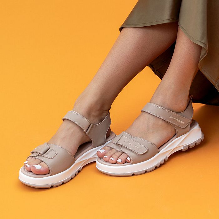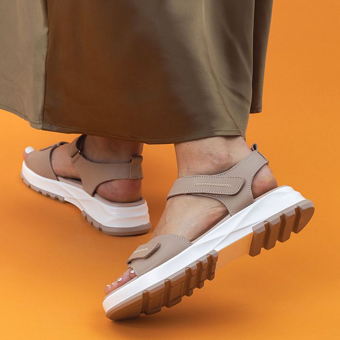 Толстая подошва, массивный каблук и стильный дизайн — эти босоножки выделяются среди других. Модель выполнена из натуральной кожи, а перфорация обеспечивает дышащий эффект. Удобная застежка на липучке фиксирует ногу, мягкая стелька создает комфорт даже при длительной носке.