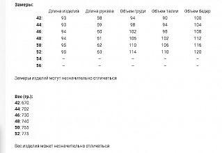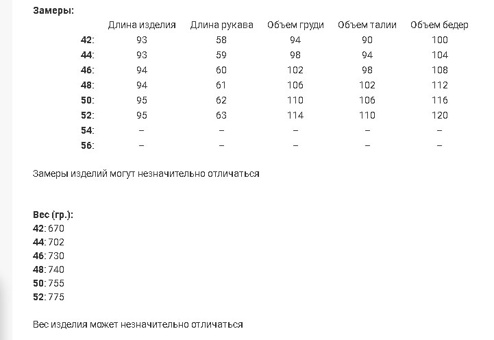 Замеры представлены в виде размерной сетки среди фотографий этой модели.
