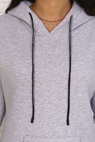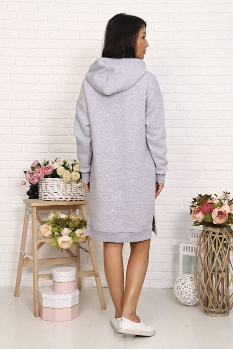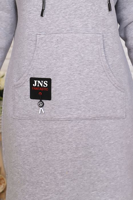 Туника из футера трехнитки с начесом. С капюшоном, с длинным рукавом и с карманом "кенгуру". На кармане пришит молодежный шеврон. Длина туники до колена.