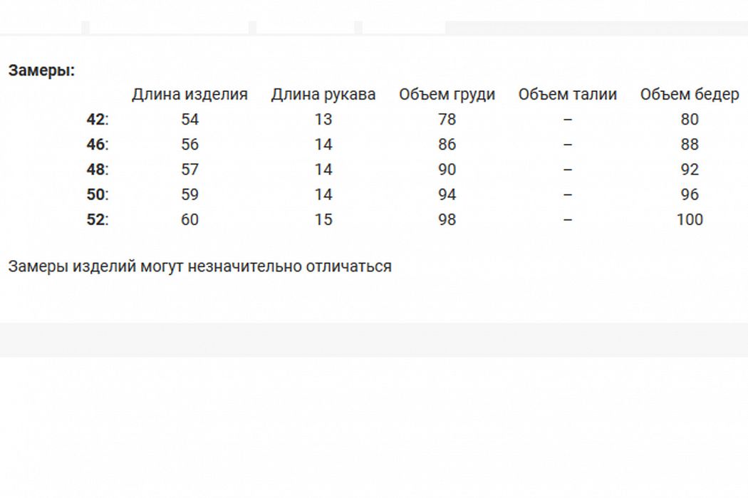 Футболка полуприлегающего силуэта, с округлой горловиной, длиной до середины бедра. Рукав втачной короткий. Горловина обработана бейкой из основного полотна.