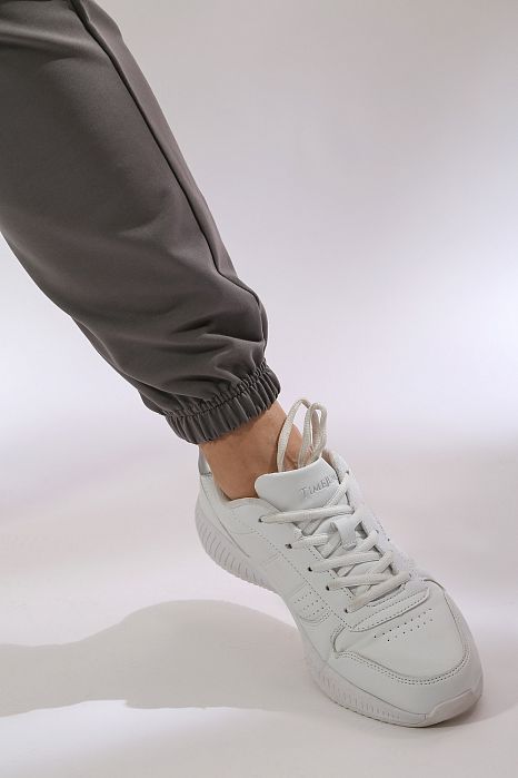Брюки – джоггеры стандартной длины. На притачном поясе с эластичной тесьмой внутри и карманами в боковых швах. Нижние срезы – с эластичной тесьмой.