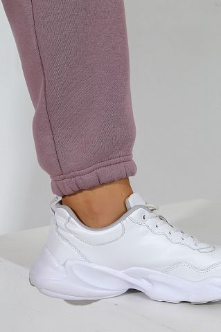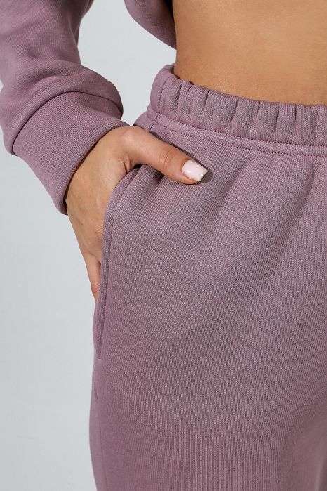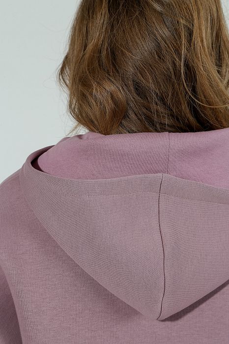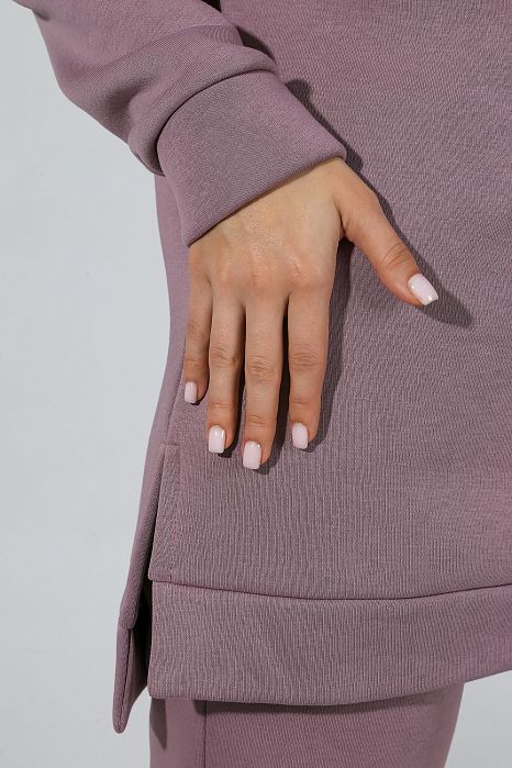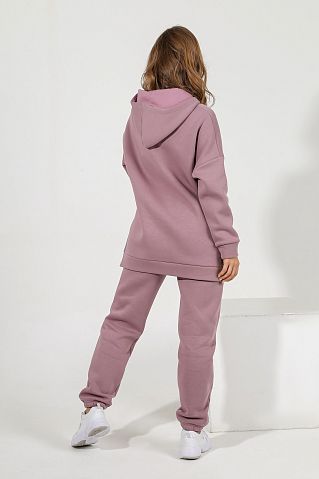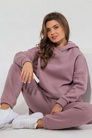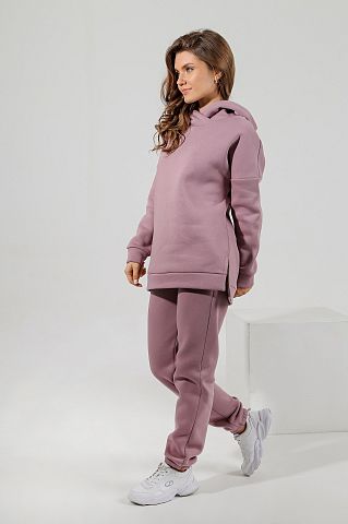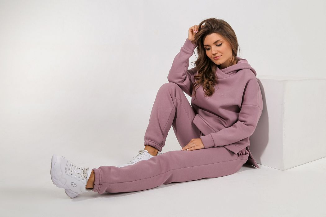 Из гладкокрашеного трикотажного полотна «футер», состоящий из толстовки и брюк.