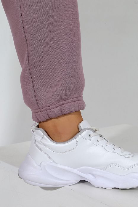 Брюки – длинные, с карманами в боковых швах. Верхний и нижние срезы обработаны с эластичной тесьмой.