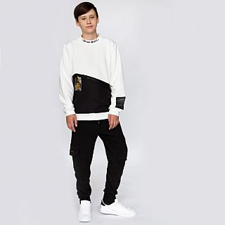 Брюки-джоггеры для мальчика. Изготовлены из мягкого, приятного к телу футера. Позволяет коже ребенка «дышать», хорошо впитывает влагу, не растягивается после стирок. Манжеты оформлены кашкорсе — эластичным трикотажным материалом. Хорошо тянется, не давит. Два вместительных накладных кармана на коленях.