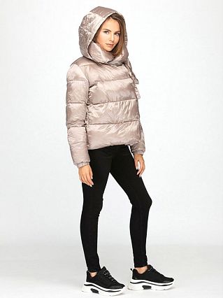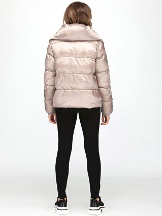 Состав: верх - 100% нейлон, подкладка - 100% полиэстер,под подкладом находится утеплитель БИО-ПУХ - синтетическое полимерное волокно - запатентованный биополимер Sorona от компании DuPont, который характеризуется такими свойствами, как сбережение тепла, легкость, воздухопроницаемость и простота ухода. Плотность- 250 гр/м2. Короткая расклешенная куртка. Свободный отложной воротник, зафиксированный завязками, может трансформироваться в капюшон. Модель застегивается на молнию с пуллером, закрытую планкой на потайных кнопках. Куртка дополнена врезными карманами на молниях. Металлическая фурнитура – фирменная. Для изготовления модели использован прочный нейлон с пропиткой DWR с водо- и грязеотталкивающими свойствами и утеплитель нового поколения – биопух.
