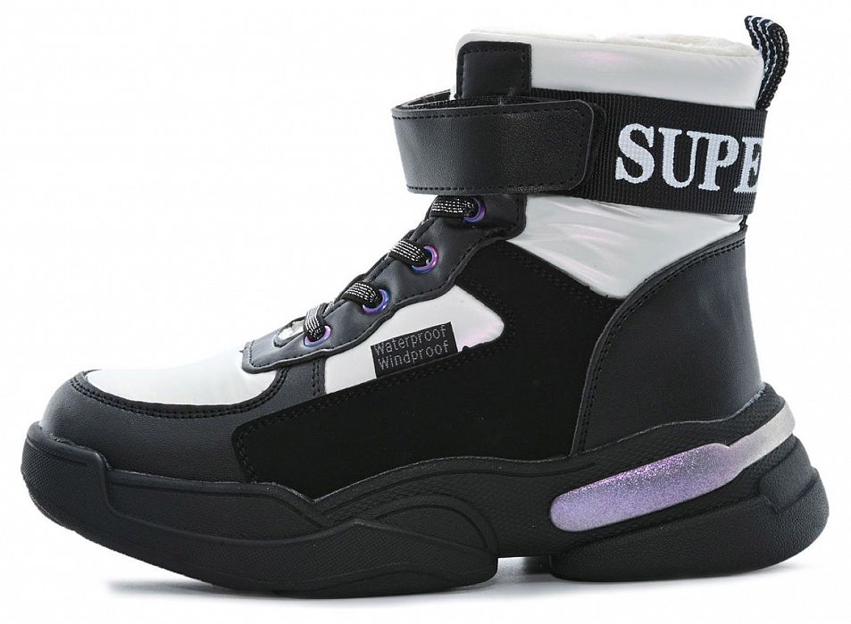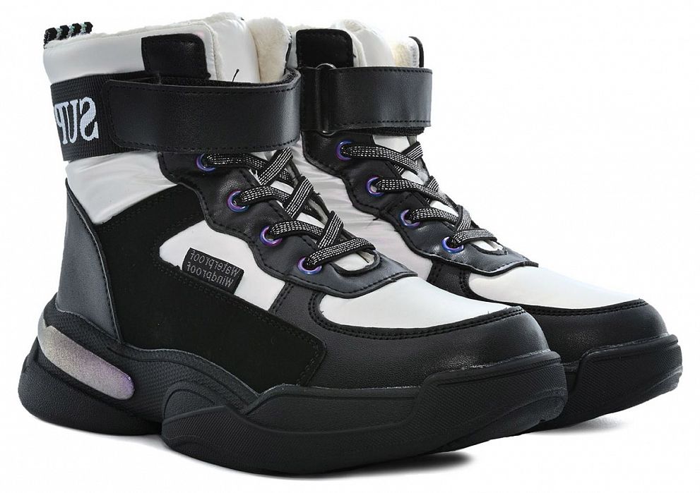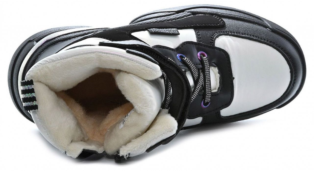 T-10373-A бел/черн Ботинки зима для девочек (32-37)/8