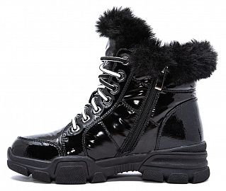 Стильные, элегантные , зимние ботинки для девочки. Выполнены из искусственной кожи, подкладка из искуственной шерсти, гибкая, рифленая подошва изготовлена из противоскользящего и легкого материала ТЭП. Сбоку предусмотрена застжка- молния.
