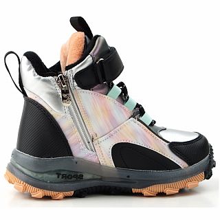 5313-3Q серебро/черн Ботинки зима для девочек (26-31)/8